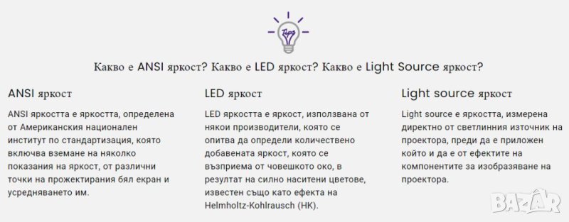 Какво е ANSI яркост? Какво е LED яркост? Какво е Light Source яркост?