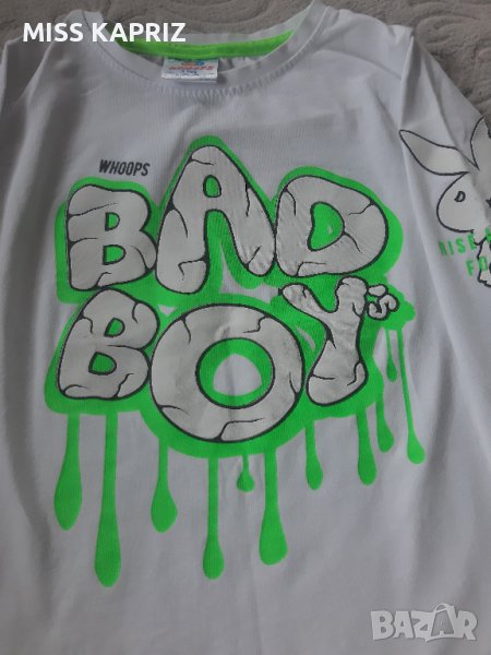 Памук и ликра тънка блуза за момче,3г. С ефектен надпис и щампа на ръкава,изчистен гръб.
