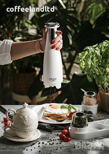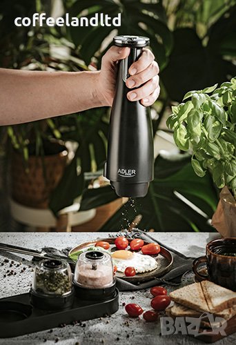 Продуктът се отличава с иновативна комбинация от три мелачки в комплекта. Електрическата мелачка AD 4449 е изключително удобна и лесна за използване, освен това има някои интересни функции - например, можете свободно да регулирате фиността на смилане на подправките. Това е полезно, ако един член на домакинството обича едро смляна сол, а друг предпочита фино смлян пипер. От своя страна, осветената основа улеснява контрола къде отиват подправките и колко още трябва да се смелят. Капацитетът на една мелачка е 150 ml, така че не е нужно да се притеснявате да ги допълвате редовно. Зареждате устройството с USB кабел и след 2,5 часа можете да използвате пълноценно функциите му. Няма нищо по-вкусно от прясно смлени подправки и билки.