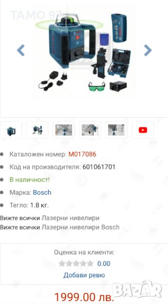 Продавам професионален ротационен лазер на Бош със зелен лъч в