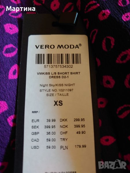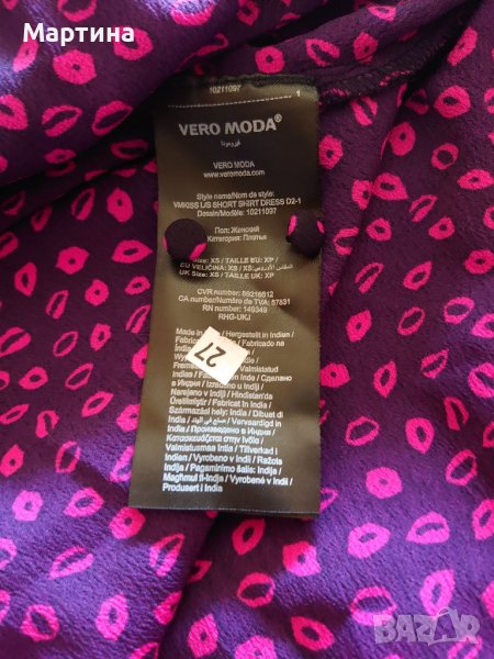 Vero Moda- черна на розови целувки, не се мачка, по етикет XS, но според мен става и за S. Размери: Дълга 96см. Широка на кръста 37см. Широка на бюста 44см. Ръкав 58см.