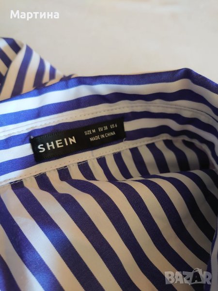 SHEIN - нова, но е паднал етикета, никога не е носена. Роклята е тип риза с летен десен - на бели и сини черти, отстрани има скрит цип за по-лесно обличане. Размери: Дълга 110см. Широка на кръста 40см. Широка на бюста 46см.(но тъй като има завъртулка на бюста, ще стои добре и на по-голям бюст). Ръкав 56см. ПРОДАДЕНА!!!