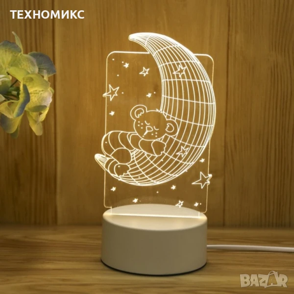 ПРОМО!!! Холограмна 3D LED нощна лампа