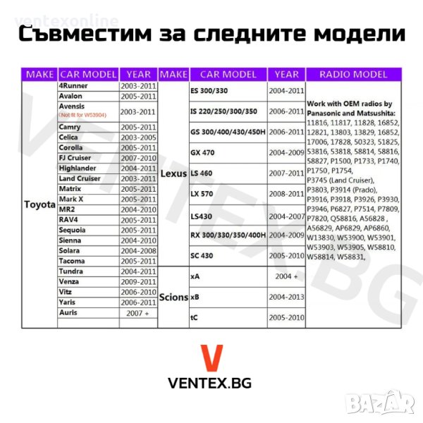 • Avensis 2003-2011 (Не е подходящ за W53904)