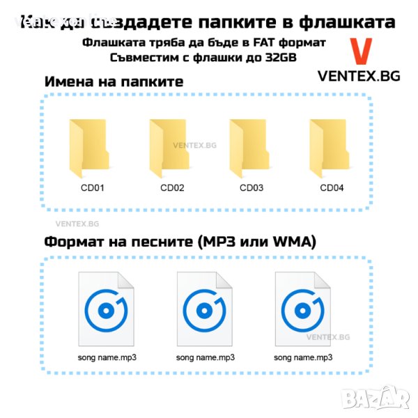 • Лесно и бързо възпроизвеждане на музика чрез AUX , флашка или карта памет