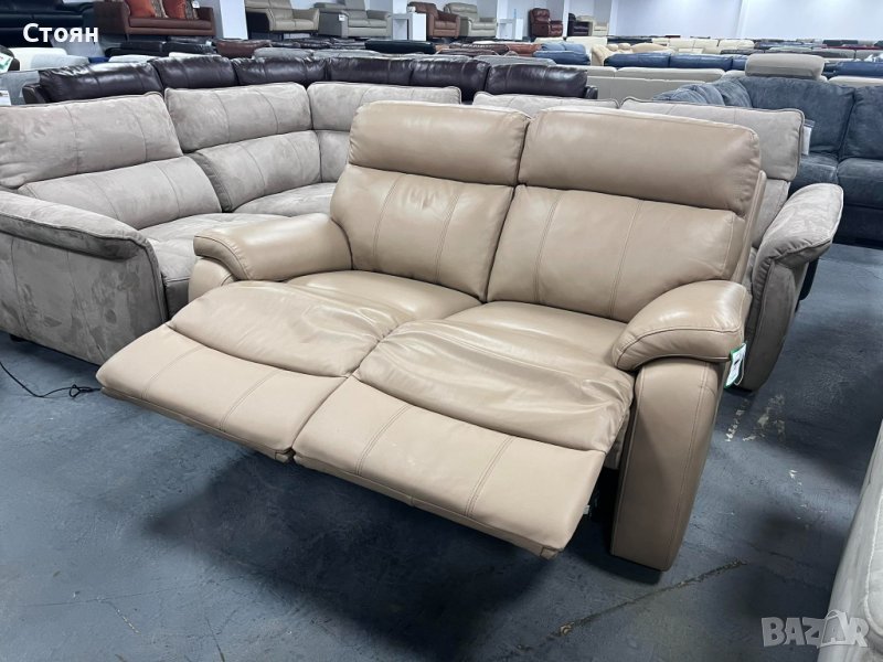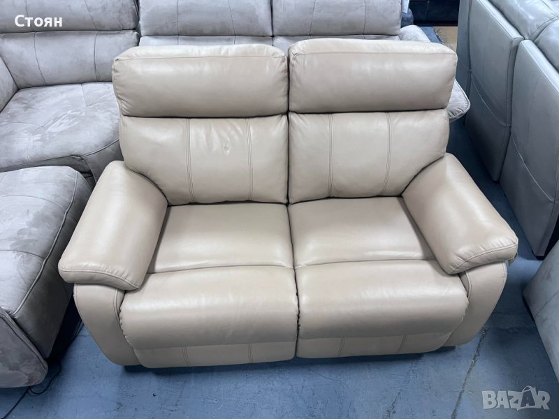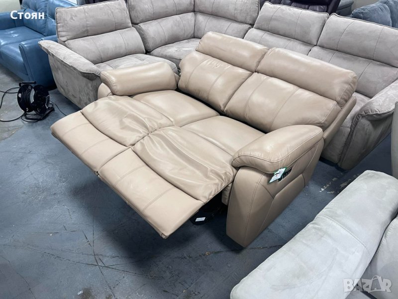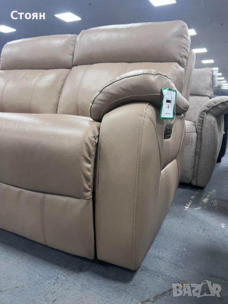 Кремав кожен диван двойка с електрически релаксиращ механизъм за краката.