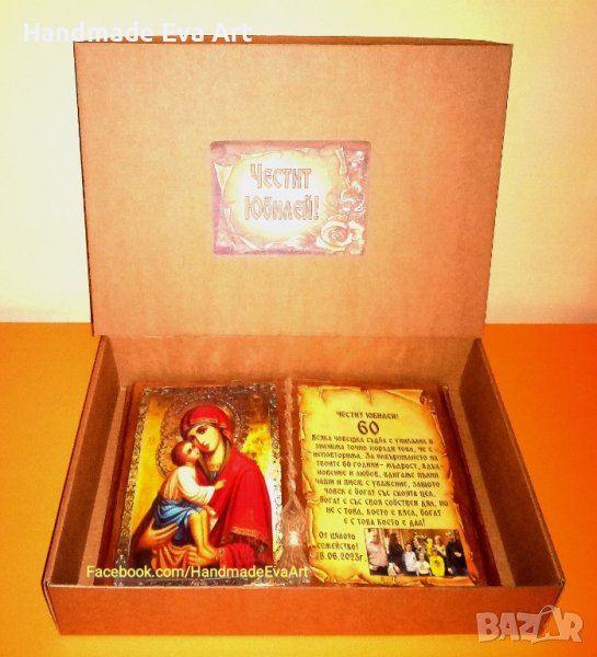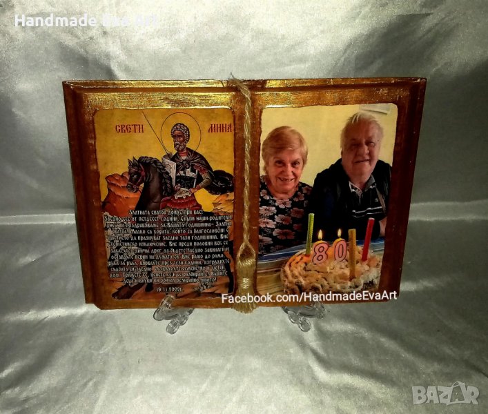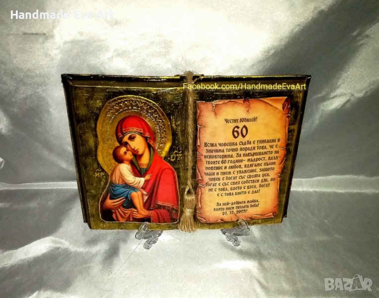 Подарък за Юбилей- Състарена книга с икона /снимка/ цифри и личен поздрав → Обява 41378947