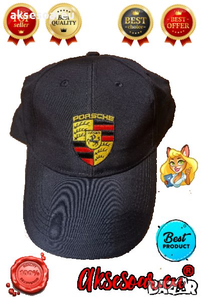 тъмносиня или сива (на БМВ и Фоксваген) шапка с козирка със специално поръчана