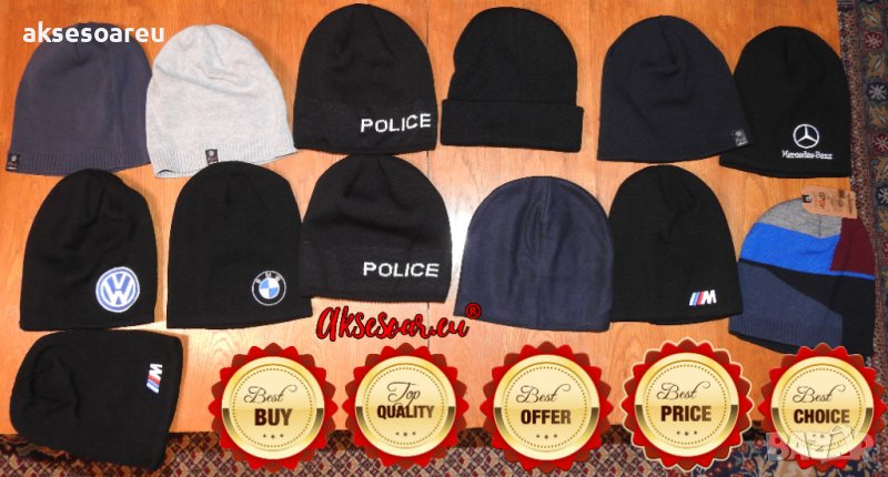 Зимна шапка с бродирана 3D емблема лого на кола BMW M-power Mercedes Volkswagen POLICE БМВ М-пауър М → Обява 41379584