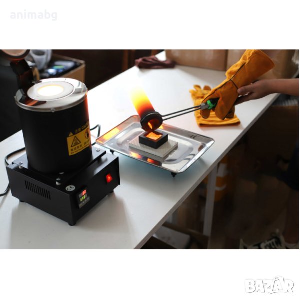 Вертикалната пещ е специално проектирана и конструирана за топене на метали за леене и легиране на метал до 1100C. 40 минути за 2 кг злато. Габаритни размери::20*20*40 мм. Тегло: 9 кг,. Напрежение: 220V,50HZ.