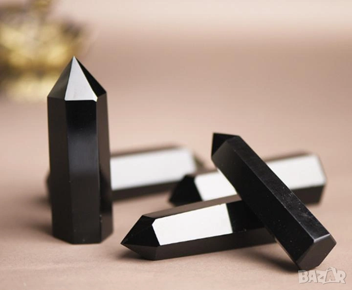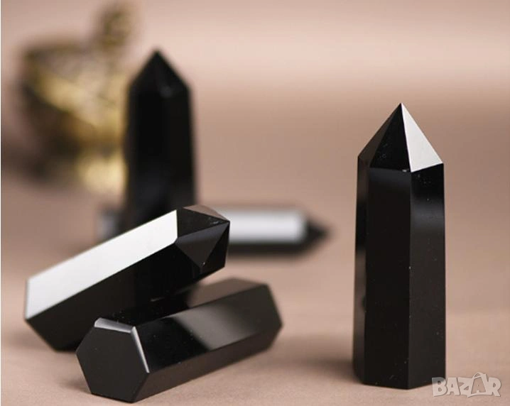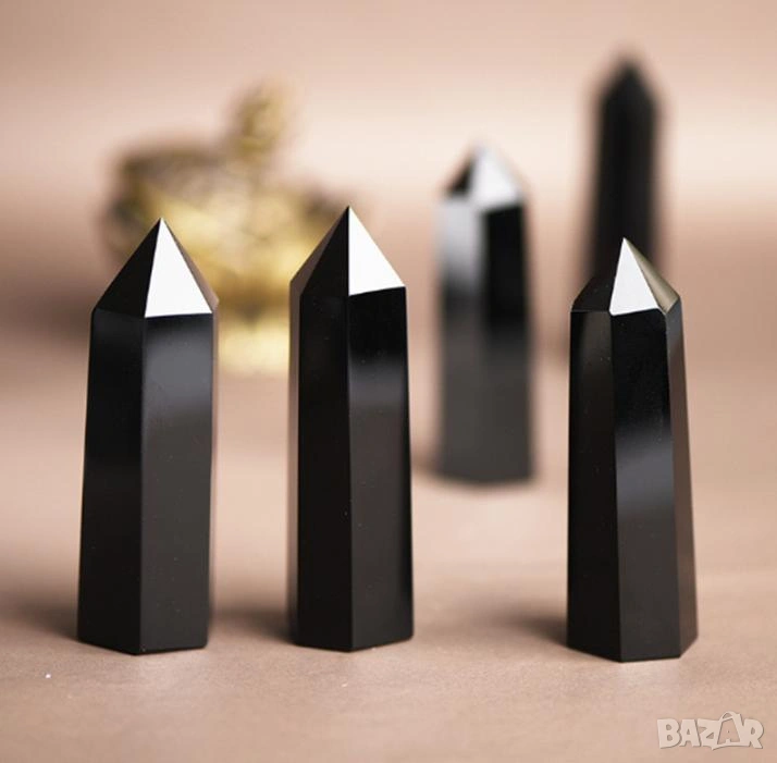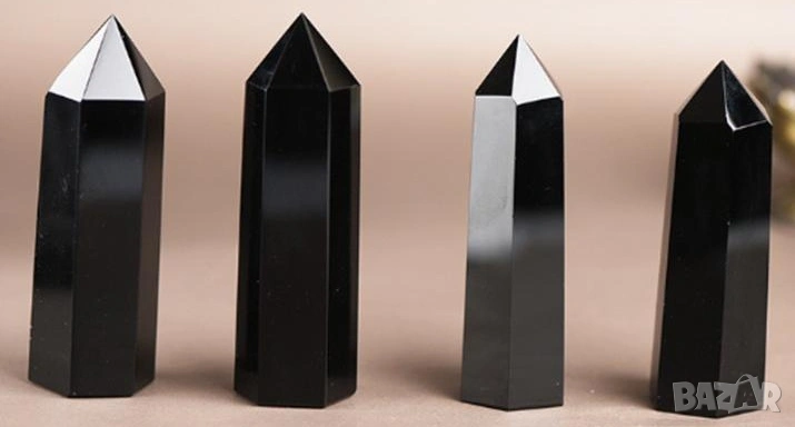 Вулканично Стъкло Пирамидален Обелиск Монокристал Полиран Черен Обсидиан Пазител Камък Закрилник