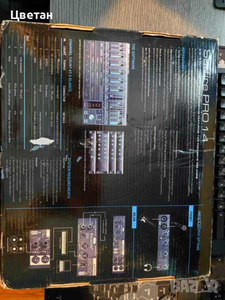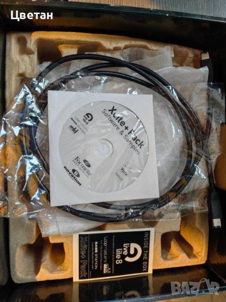Аудио интерфейсът се предлага в пълен комплект - кутия, кабели, софтуер.