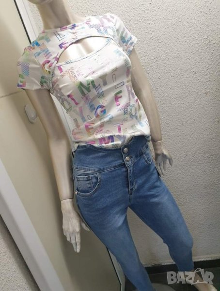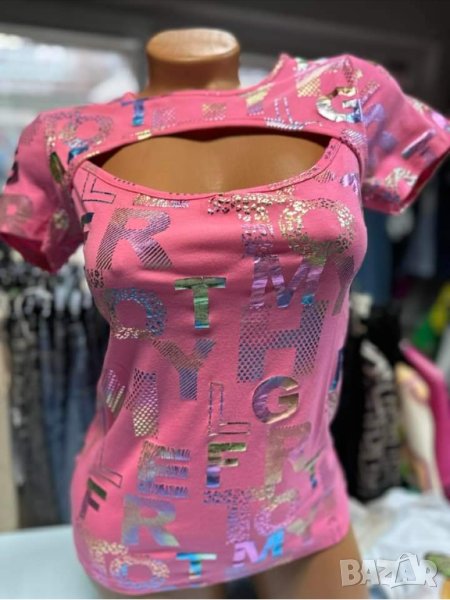 Блузка с отворено деколте и холограмни надписи - обличана е броени пъти