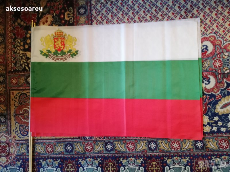 * 90 х 59 см. с българския герб и с дървена тънка пръчка -