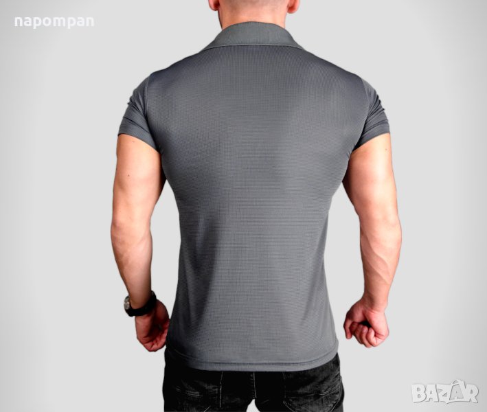 Мъжка спортно елегантна риза с къс ръкав / официална тениска с яка - сива