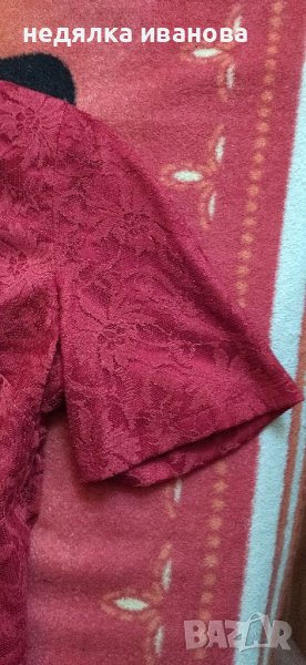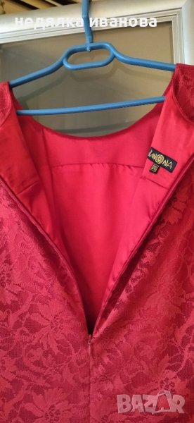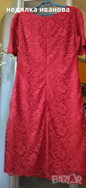 Червена дантелена рокля,неупотребявана,със свалени етикети,скрит цип на гърба.Подплатата е сатен,ръкавите са леко разкроени.Стилна и елегантна.2XXL размер,но по-скоро отговаря на XL.