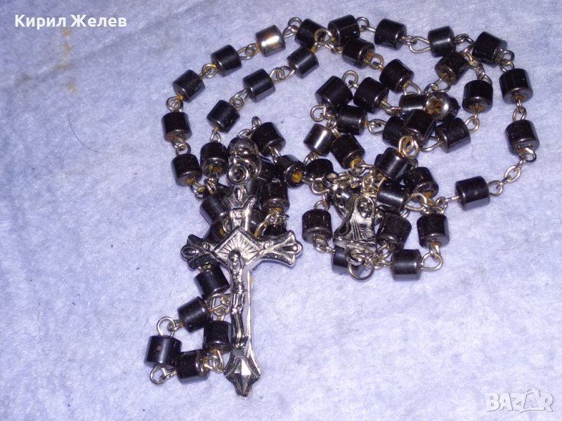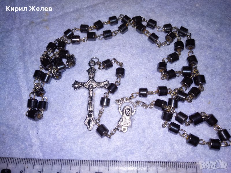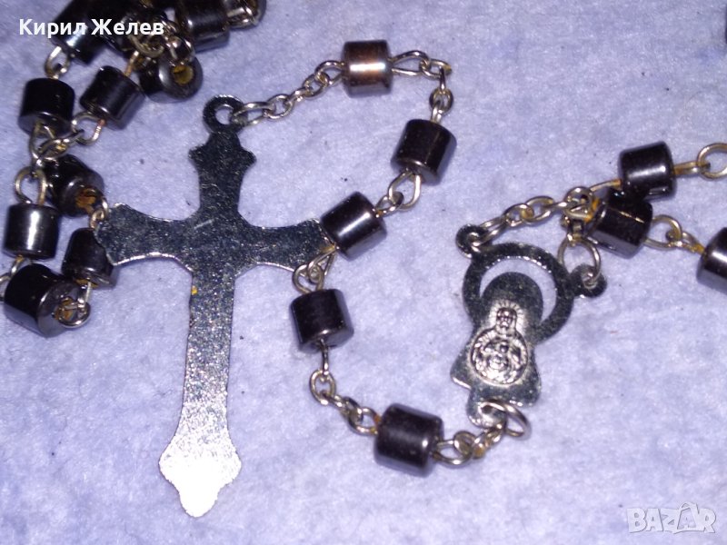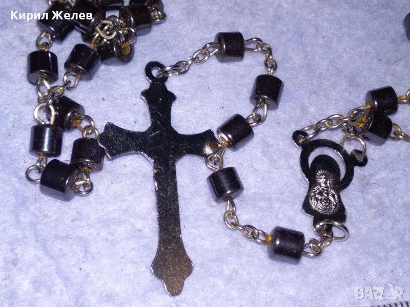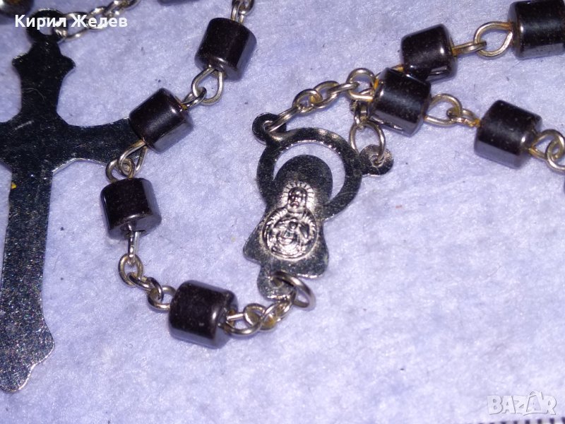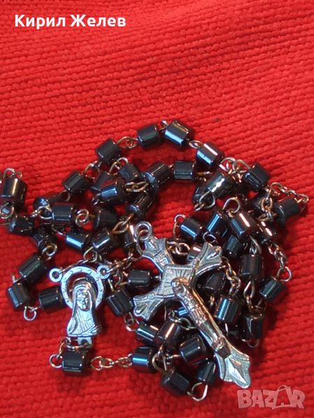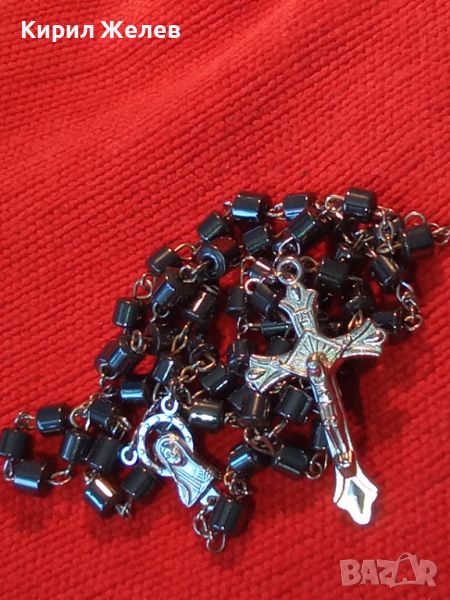РИМОКАТОЛИЧЕСКА ОГЪРЛИЦА МОЛИТВЕНА БРОЕНИЦА ХЕМАТИТ със СРЕБРИСТИ РАЗПЯТИЕ и ДВУСТРАННА ИКОНКА 26376