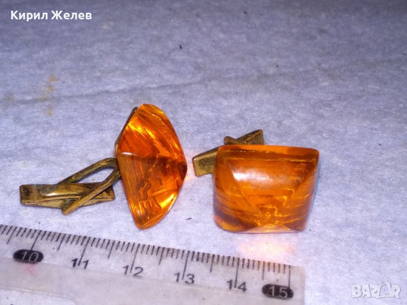 Старинни РУСКИ КЕХЛИБАРЕНИ БУТОНЕЛИ Бронзови с ПОЗЛАТА и Шлифован НАТУРАЛЕН БАЛТИЙСКИ КЕХЛИБАР 37698