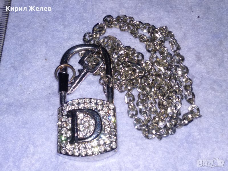 ШАРМАНТЕН МЕДЕН с БЯЛА ПОЗЛАТА АРТ ПЕНДАНТ КАТИНАРЧЕ с ИСКРАЩИ КРИСТАЛИ и СТОМАНЕНА ВЕРИЖКА 37394