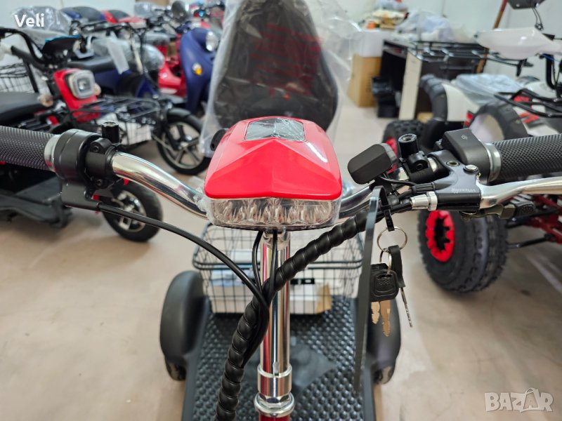 Електрическа триколка H1.Триколката е снабдена с новия модел електромотор, който няма нищо общо със стария подобен модел.Батериите са висок клас разположени под платформата за крака.Триколката е снабдена и с крачна спирачка за улеснение на водача.В новия модел са вложени висококачествени материали които различават модела от предлаганите подобни триколки на пазара.