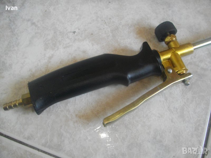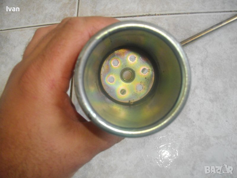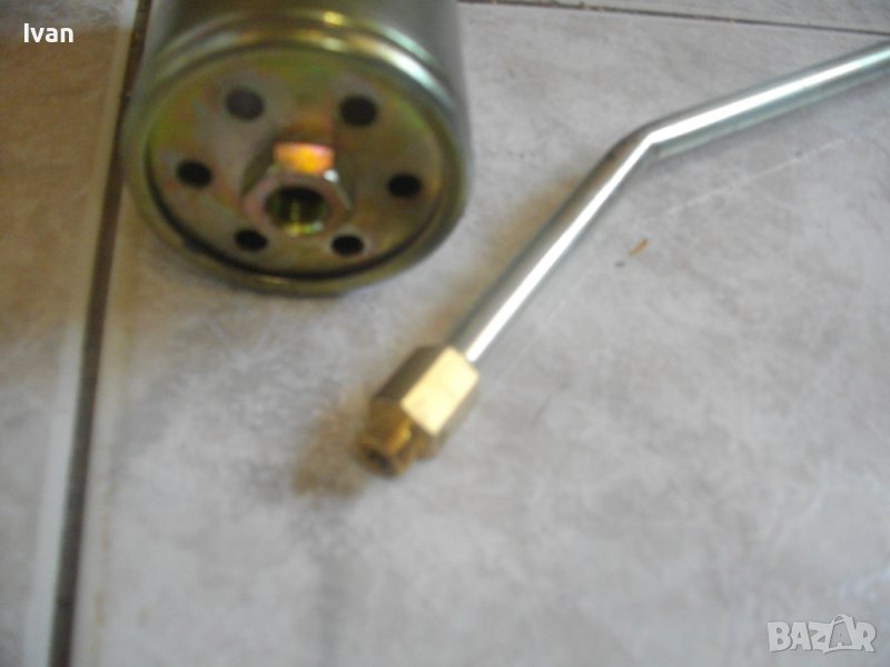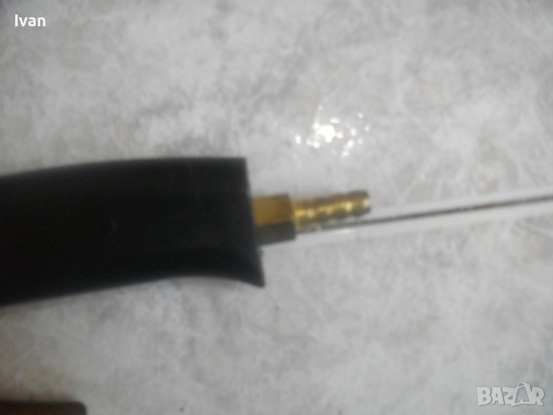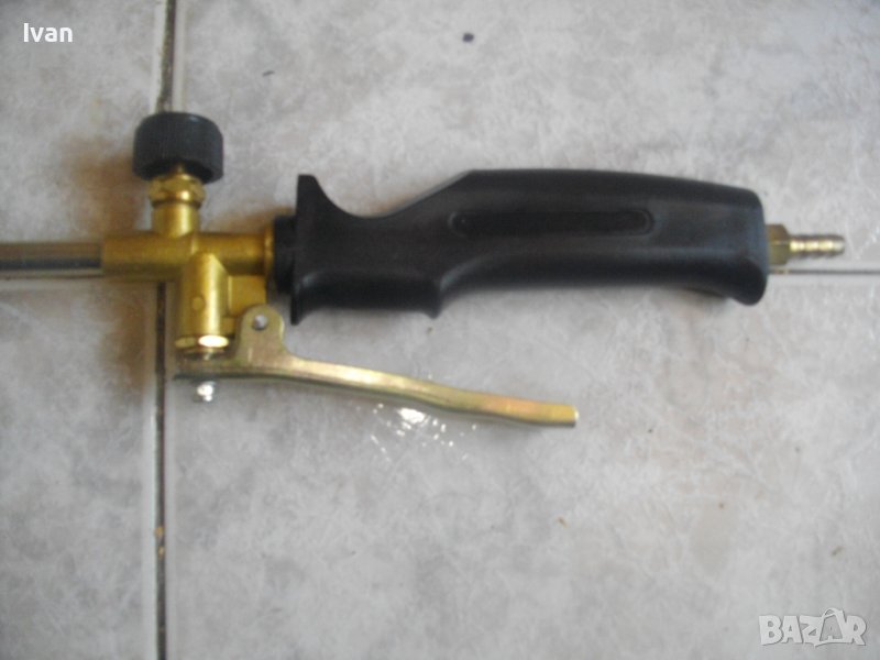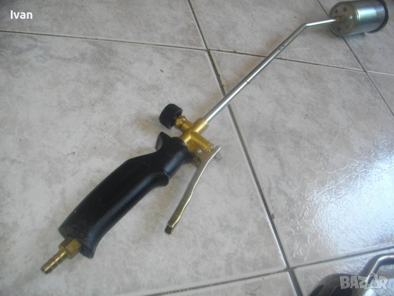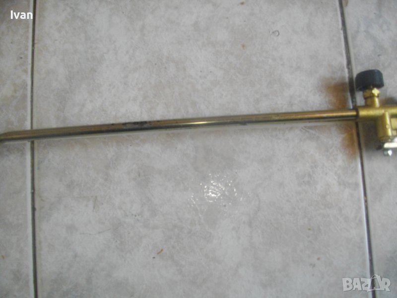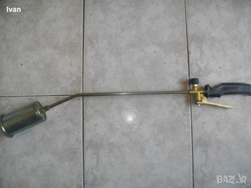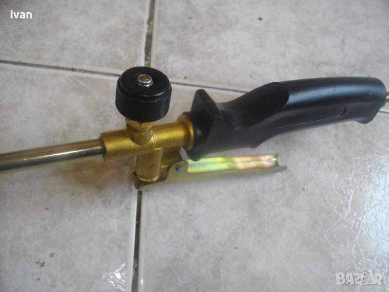 ОПИСАНИЕ на нова горелка черна 73 см за покриви/хидроизолационни ремонтни дейности и др. Цена 129 лв. Съвсем нова, неизползвана и неупотребявана.Липсват маркировки. Цялостна дължина 73 см, с поставен отзад адаптер за скачване с маркуч за скоба захват. Бронвоза глава на горелката, метален спусък, пластмасов върток спирателен.Оловно-цинкова тръба, чашка метална ф 70 мм с 7 дупки за пламъка.
