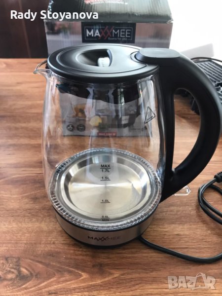 MAXXMEE Стъклена кана LED синя 2200 вата, 1,7 л