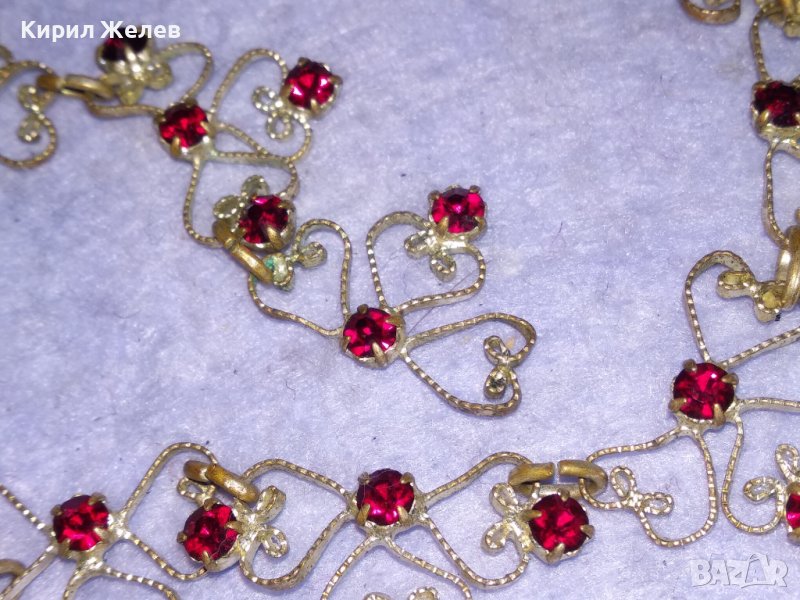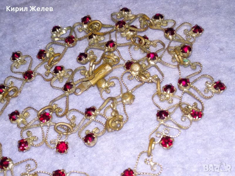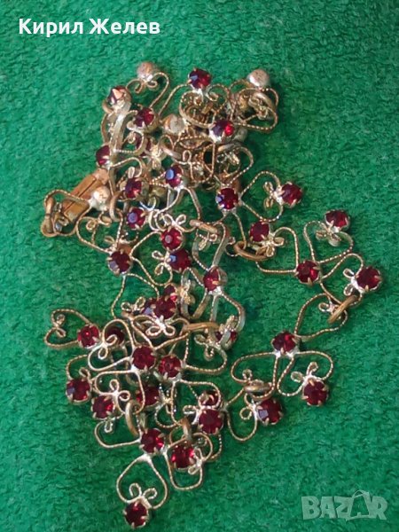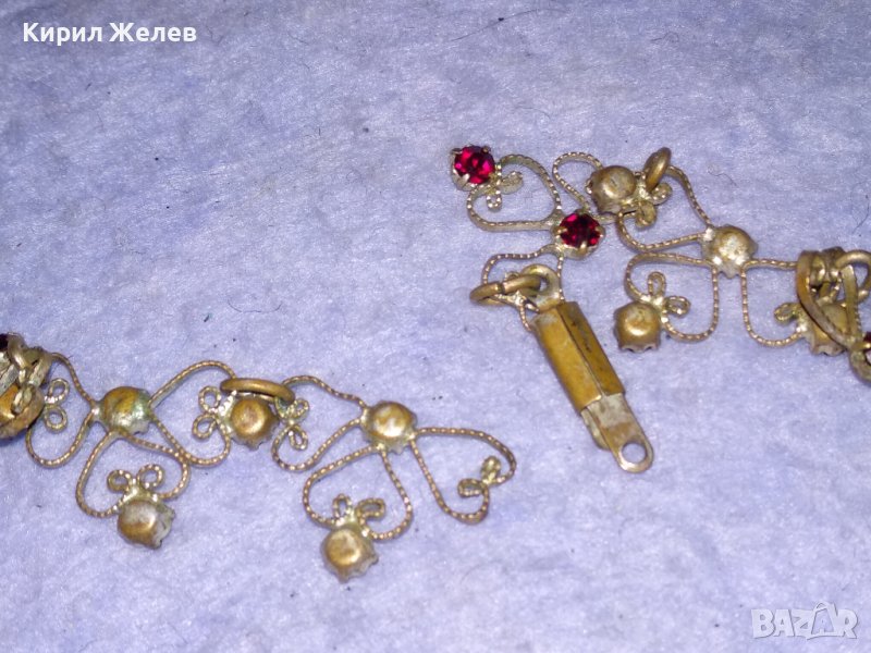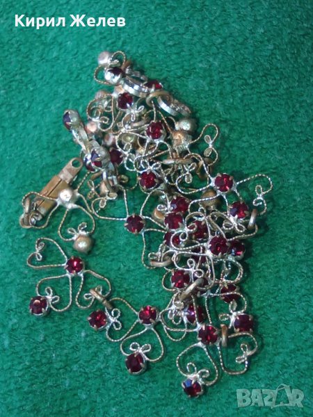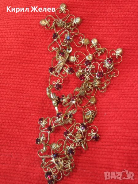 СТАРИННА БРОНЗОВА ПОСРЕБРЕНА АРТ НУВО ОГЪРЛИЦА с ФАСЕТИРАН ГРАНАТ РЪЧНА ФИЛИГРАННА ИЗРАБОТКА 38456