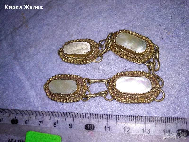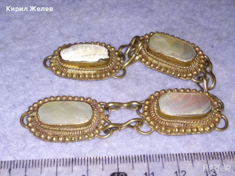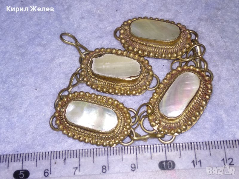 СТАРА ОСМАНСКА ПОСРЕБРЕНА БРОНЗОВА ЕТНО ГРИВНА с ШЛИФОВАН КРАЛСКИ СЕДЕФ ЛИПСВА ЗАКОПЧАЛКАТА! 38454