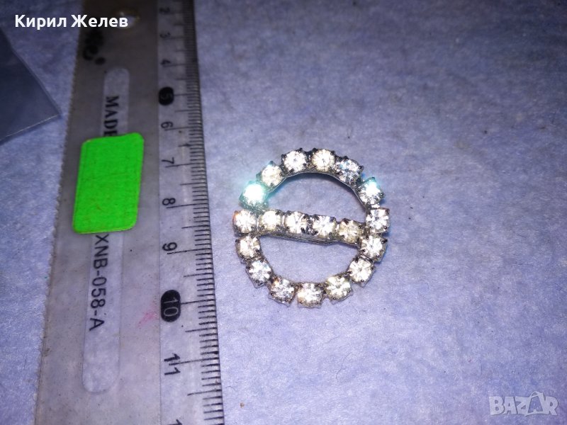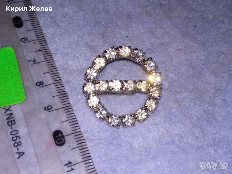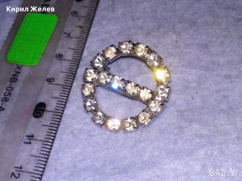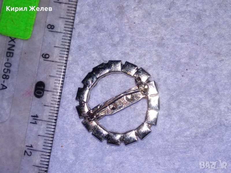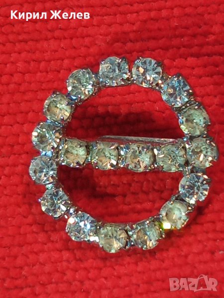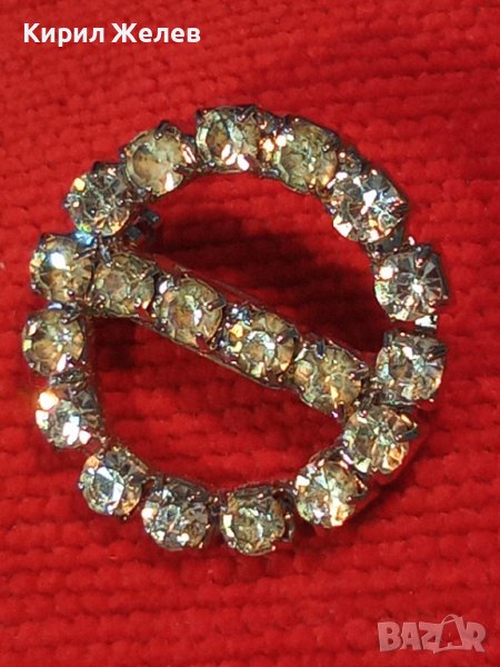 МЕСИНГОВА ПОСРЕБРЕНА РЕТРО БРОШКА с БЛЕСТЯЩИ ФАСЕТИРАНИ БОХЕМСКИ КРИСТАЛИ 37019