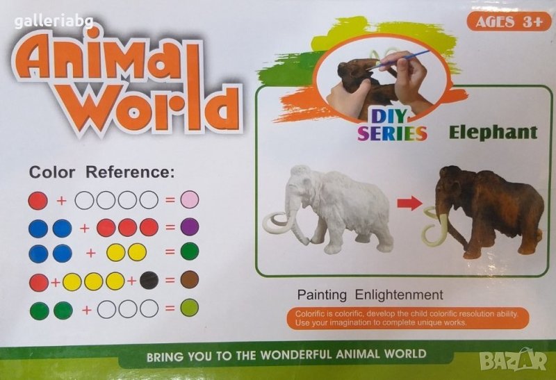 фигура на мамут за оцветяване с 6 вида боички в компелкт и четка.