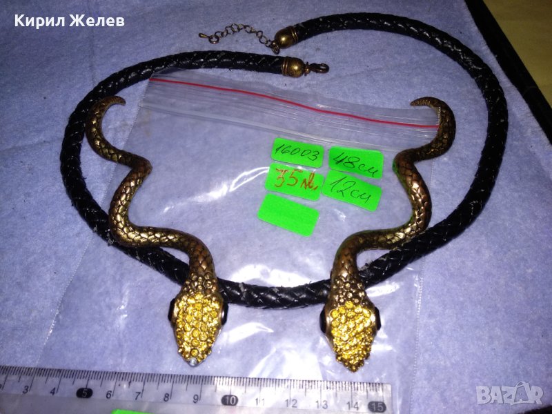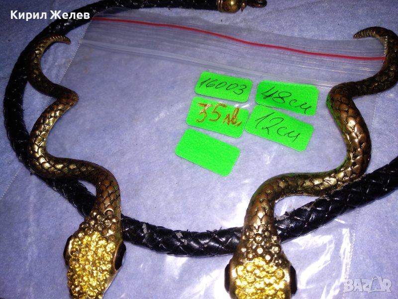 НЕОГОТИЧЕСКА ВИНТИДЖ АРТ ФИГУРАЛНА ЗМИЕВИДНА ОГЪРЛИЦА с БРОНЗОВИ ПОЗЛАТЕНИ ЗМИИ 16003