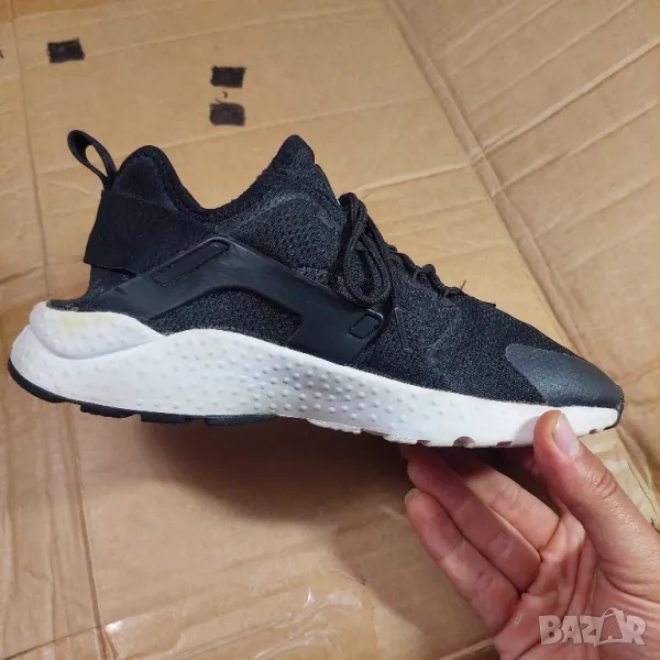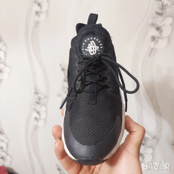 Спортен модел;Air Huarache Run Ultra взема новаторския силует от 1991 г. и го актуализира с още по-лека конструкция. Обувката и стабилизаторът на петата с марка Nike остават, но седлото вече е оформено с формована мрежеста конструкция и шнурове Flywire от следващо поколение. Освен това подметката е изрязана в предната част на стъпалото за намаляване на теглото и по-голяма гъвкавост. Обновената конструкция е подчертана от класически черно-бял цвят.