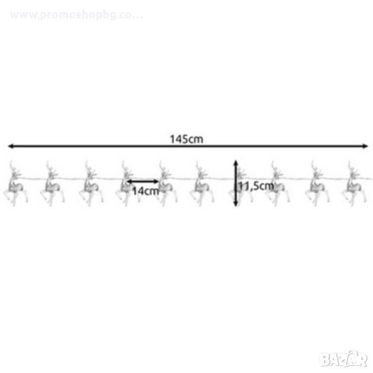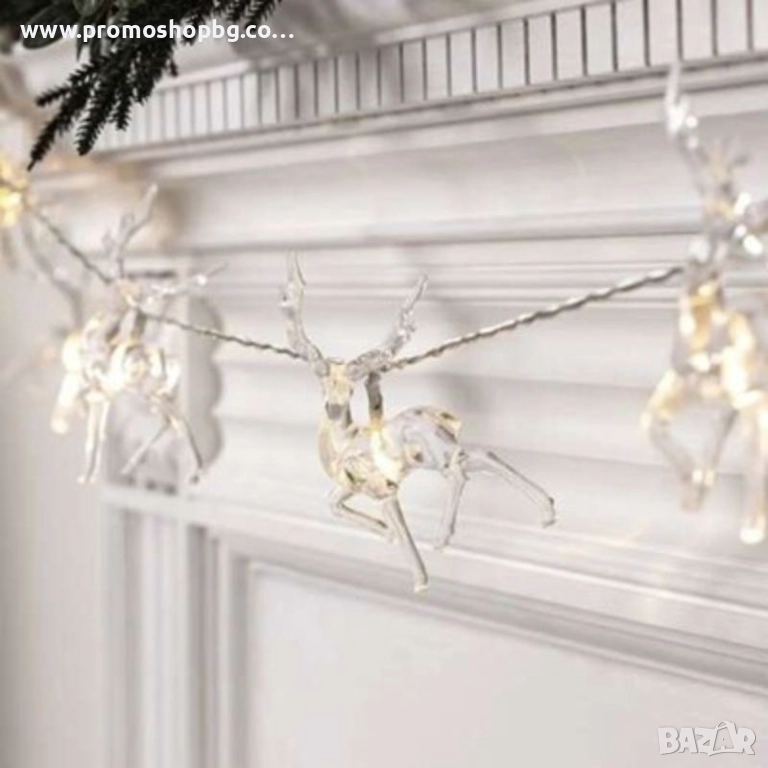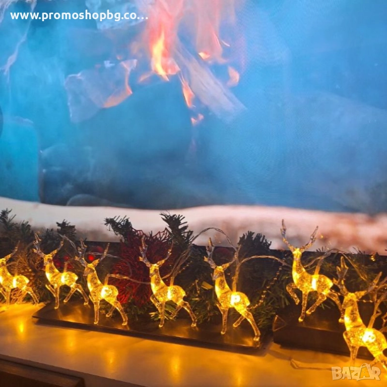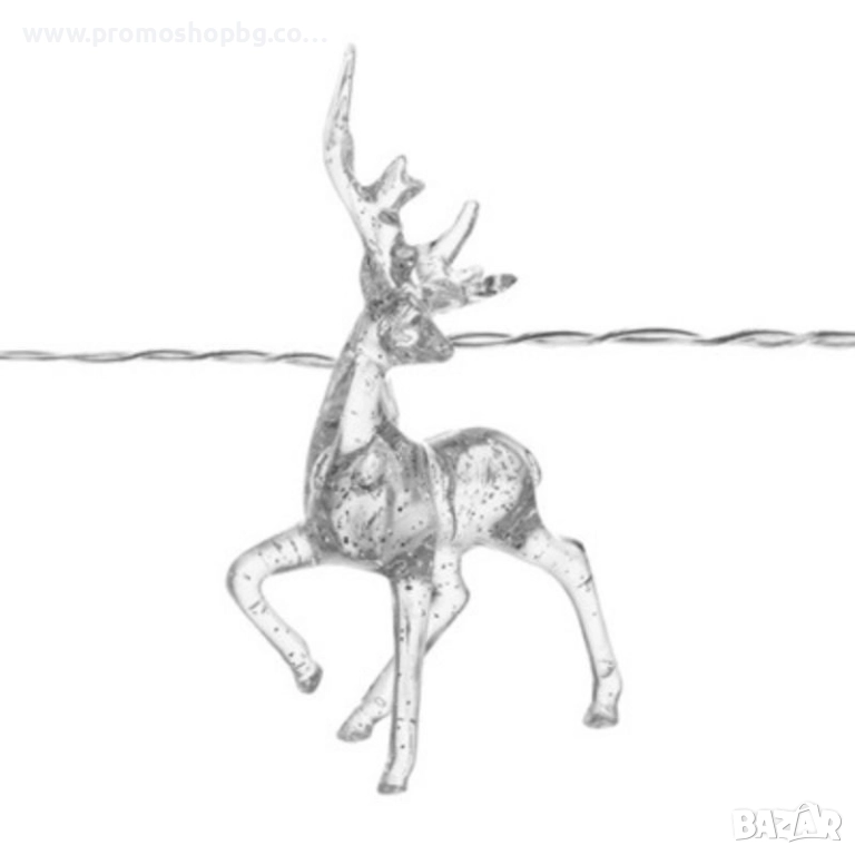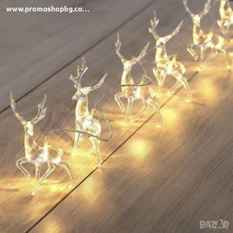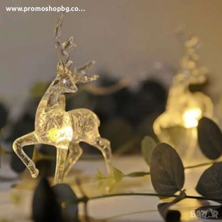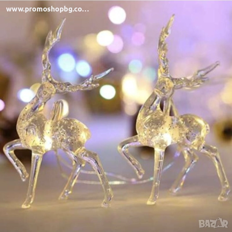 Коледна декорация, LED светещи еленчета, топло бяло, 10 броя