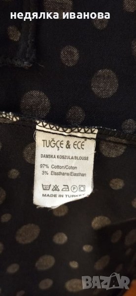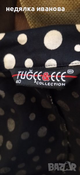 Дамско сако на наложена турска фирма,черно с бели точки.В отлично състояние, неразличимо от ново.Закопчаване мъжко със женско копче
