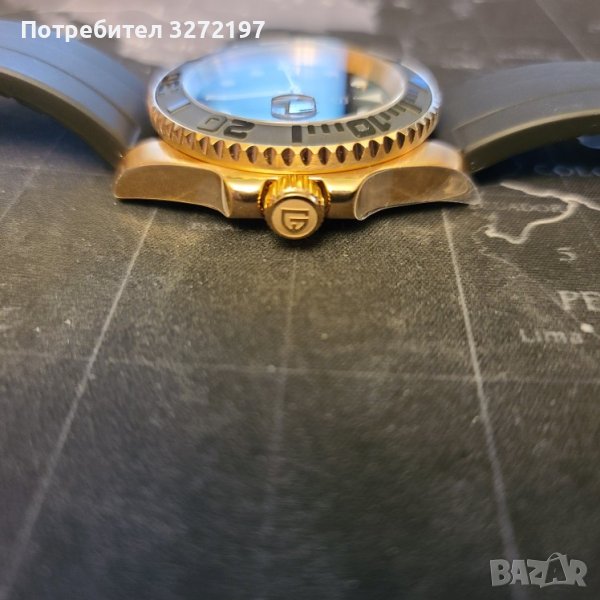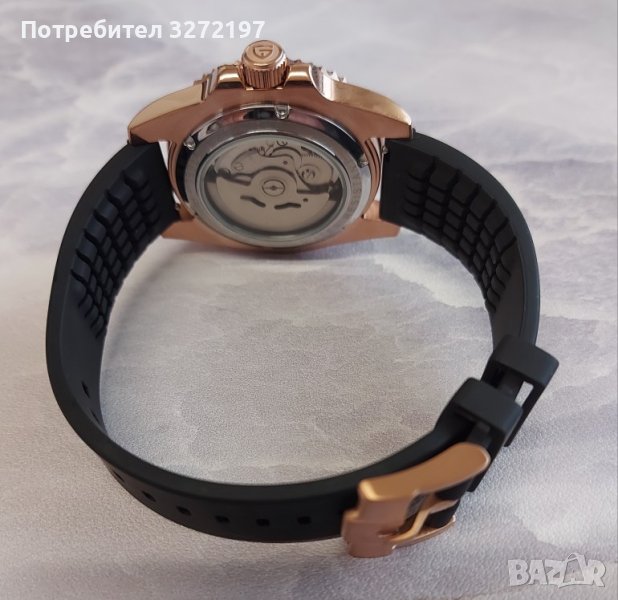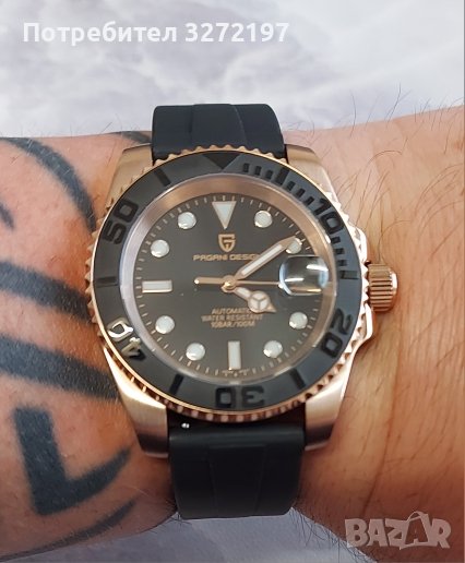 Часовникът Pagani Design разполага с ултрасветещ циферблат, корпус, устойчив на морска вода, и въртящ се керамичен безел със 120-минутни маркери;