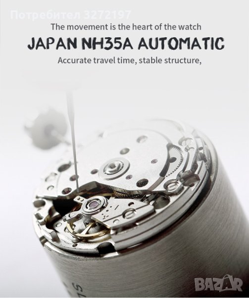 автоматичен часовник с Японски маханизъм SEIKO NH35,стъкло сапфир,водоустойчив,неръждаема стомана,дата.керамичен безел,силиконова каишка-високо качество.