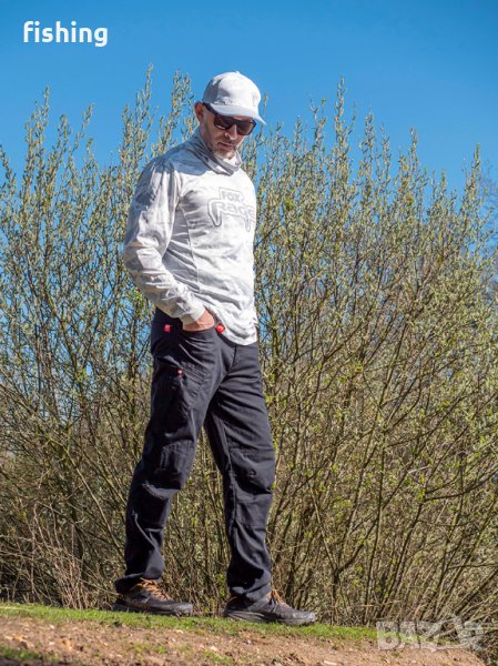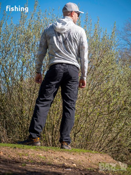Удобен и фукнционален панталон от Rip Stop материя, която го предпазва от прокъсване дори по време на интензивен спинингов риболов. Панталонът разполага с ластична част на кръста за по-добро прилягане към тялото, както и халки за колан. Панталонът притежава големи предни и задни джобове, както и два странични, които се закопчават с цип. Подсилената зона в областта на коленете допълнително осигурява спокойствие в динамичните риболовни приключения. Материал - 80% полиестер и 20% памук.