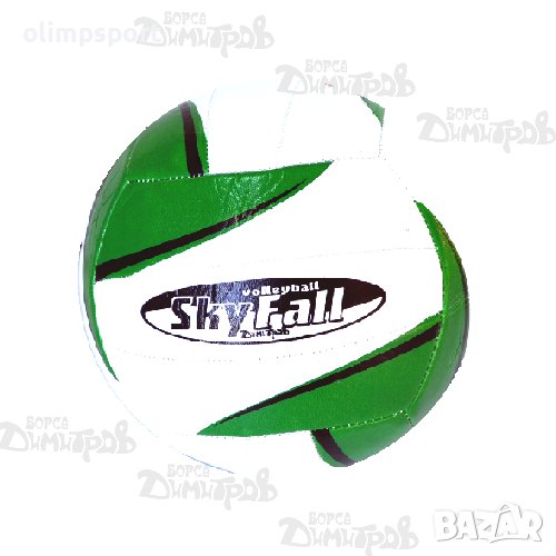 топка кожена волейболна SKYFALL. Топката е в оптимално съотношение качество/цена Топката е стандартен размер за волейбол. топката е машинно шита. Предлага се в три комбинации бяло/синьо, бяло/червено бяло и бяло/зелено. Изработена е от качествено PVC и гумен плондер. Подходяща е както за зала, така и за плажен волейбол. Тегло: 238 гр. 010502