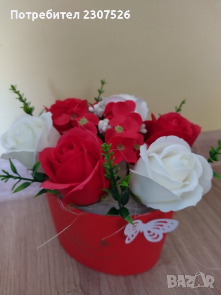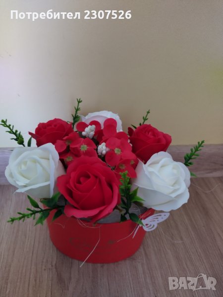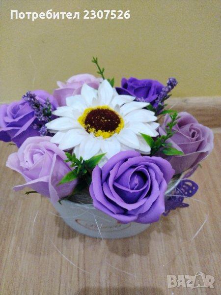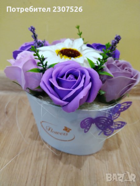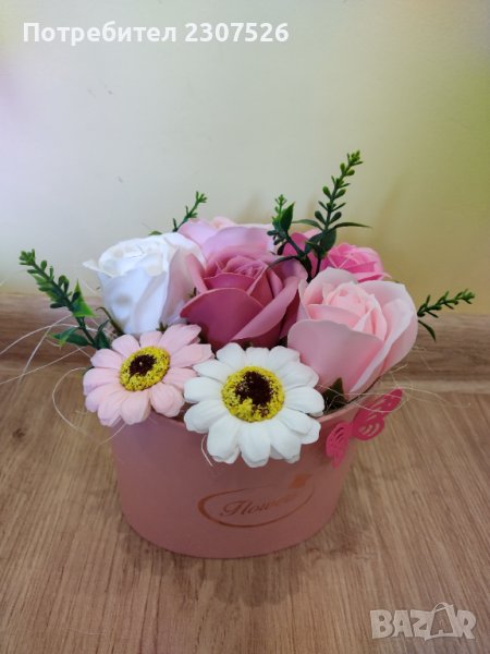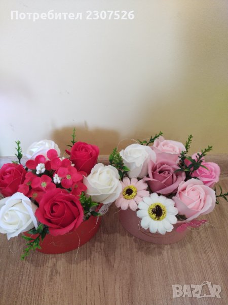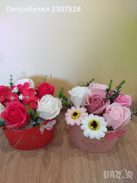 Кутийки аранжирани с вечни ароматни пластични сапунени цветя