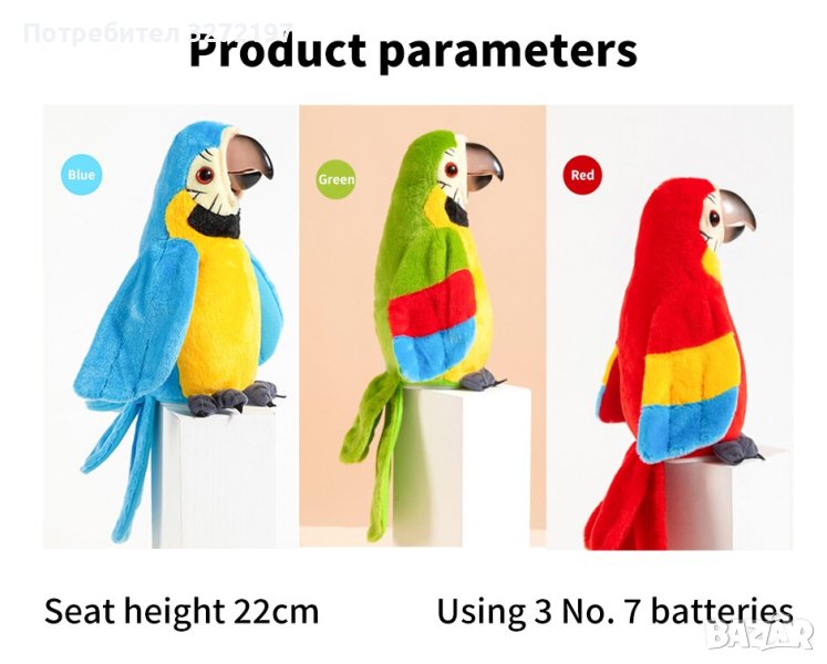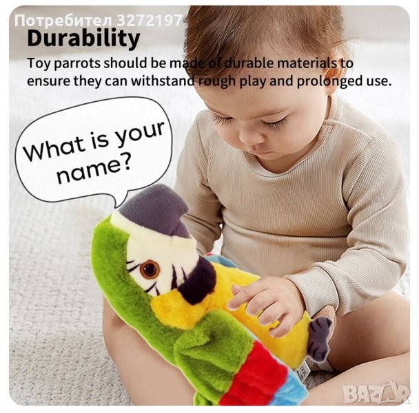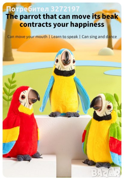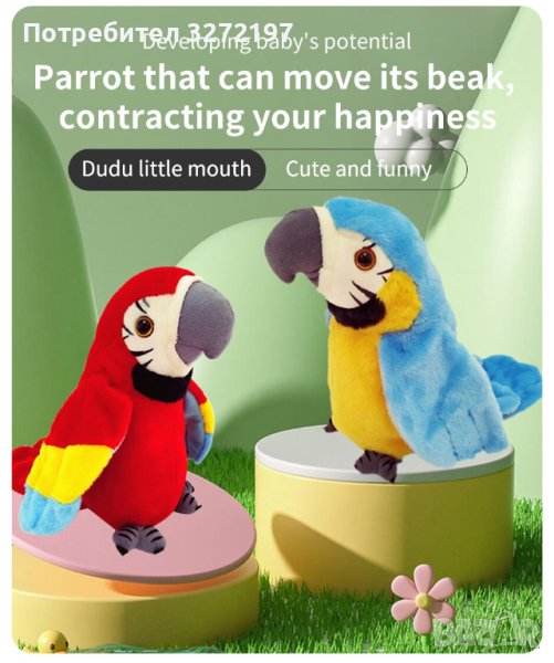 Цветен разговорлив папагал Интерактивна записваща и музикална играчка, която маха с криле и учи децата да говорят.