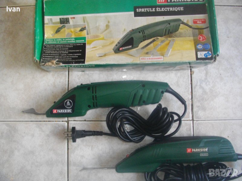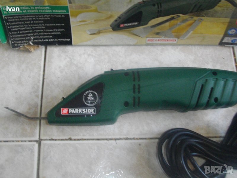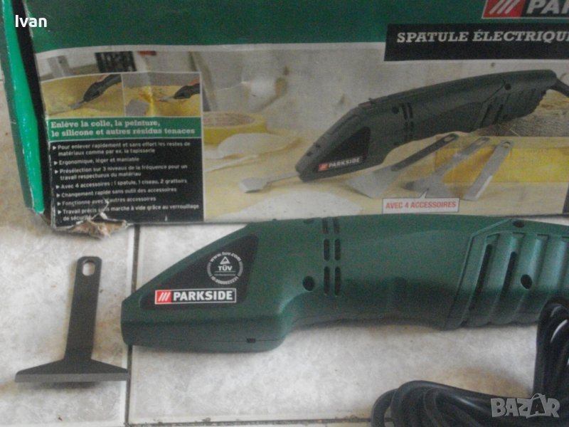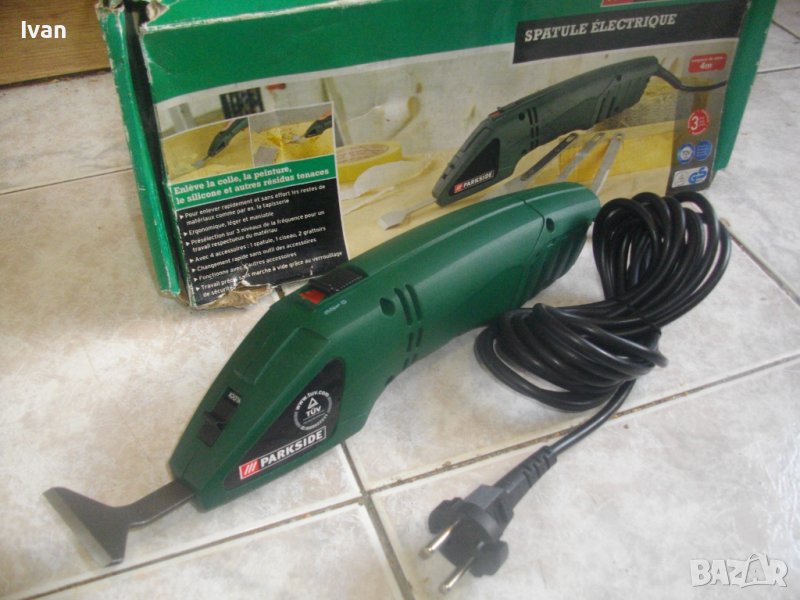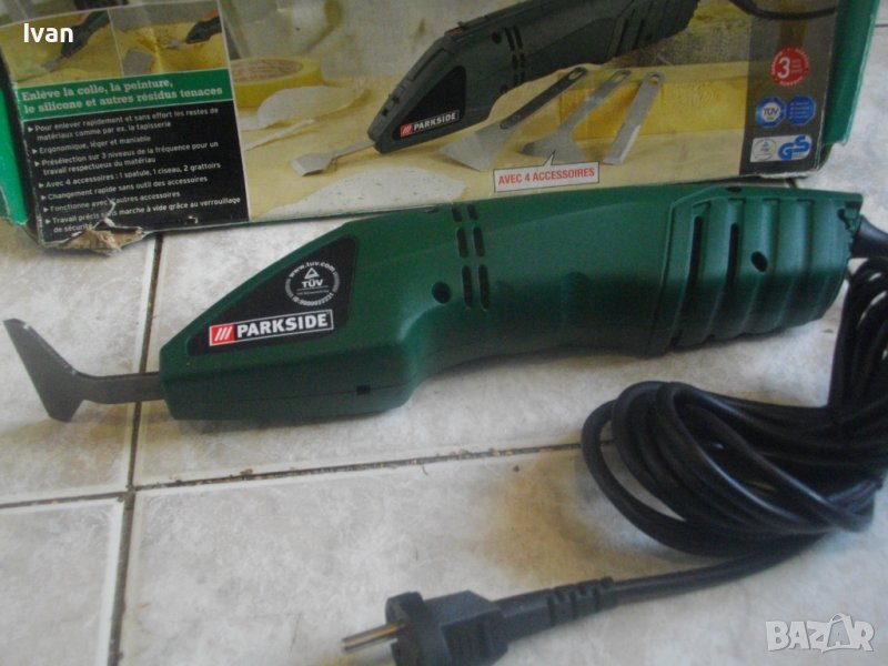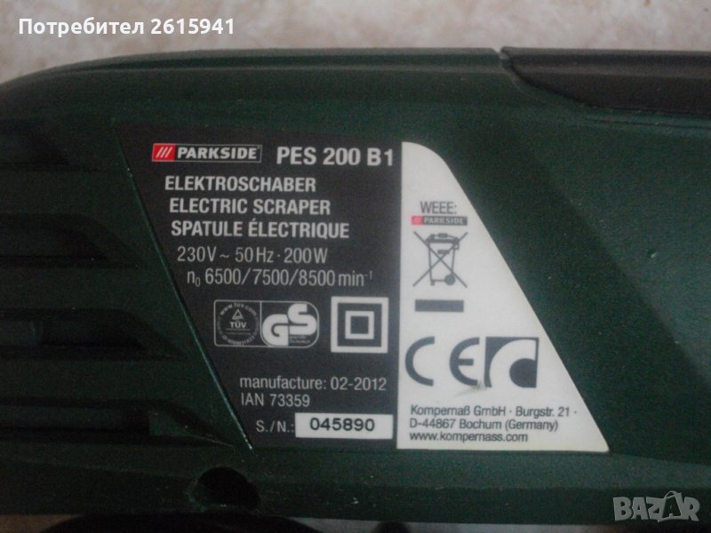 ОПИСАНИЕ на машината от 2009 г. производство. Електрическо длето-шабър, за стъргане на боя, фуги на плочки и други ремонтни дейности, посредством ротационни вибрационни движения на поставен аксесоар /напред-назад/. Марка и модел Parkside PES 200 SE. Произовдител - Kompemas GmbH Bochum. Нова, неизползвана, в оригналия си кашон. Отлично техническо състояние. 3 степени на скорост/мощност, регулируеми. Скорост - 6500-8500 об/мин. Заключващ механизъм на пставена приставка.