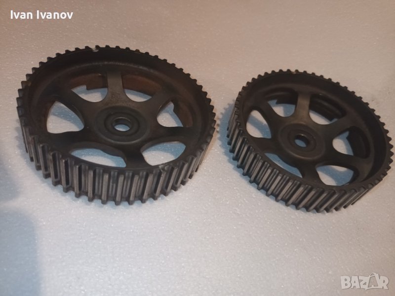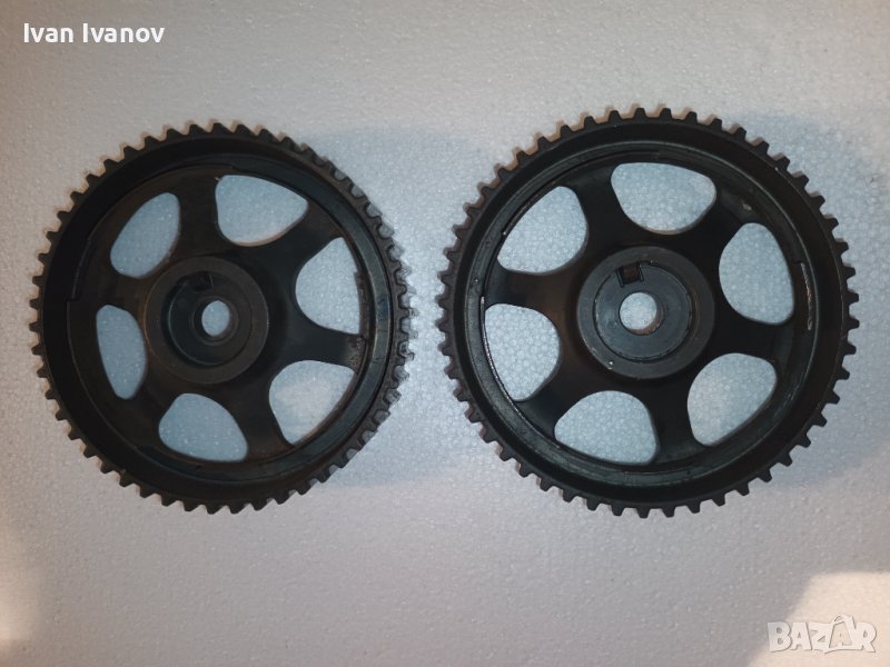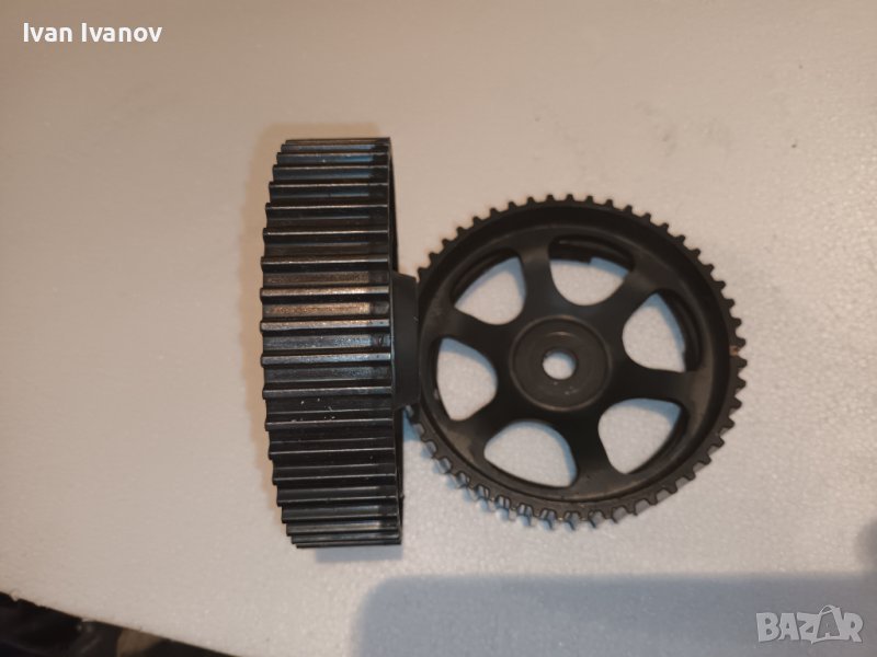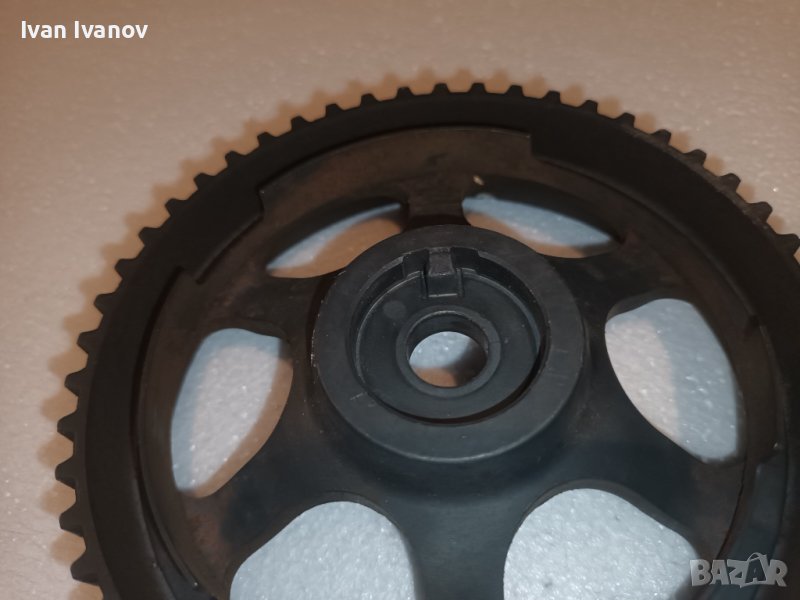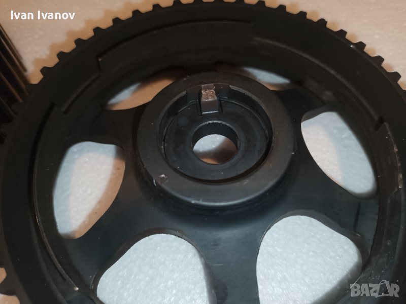 Колелото, от разпределителния вал, който е за студения входящ въздух, на същия вал е вариатора. Имам 2 такива ангренажни колела, всяко по 35 лв. Шпонките са здрави, без побитости и износване. Секторите отзад са здрави, под зъбния венец, вижда се на снимките. Без коментар на цените. Имам и другото колело, от вала за изгорелите газове, в отделна обява.