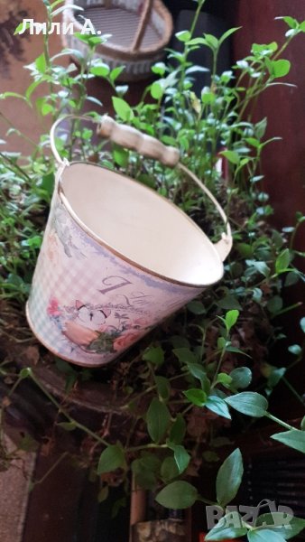 Нова , метална ретро кофичка Подарък към нея мога да добавя истинско цвете пожелание