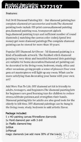 Диамантените картини не само придават жизненост, елегантност и изискана атмосфера на вашия дом, но и се превръщат в тема, което го прави чудесен декор за зали, офиси, ресторанти, кафенета, барове и др.