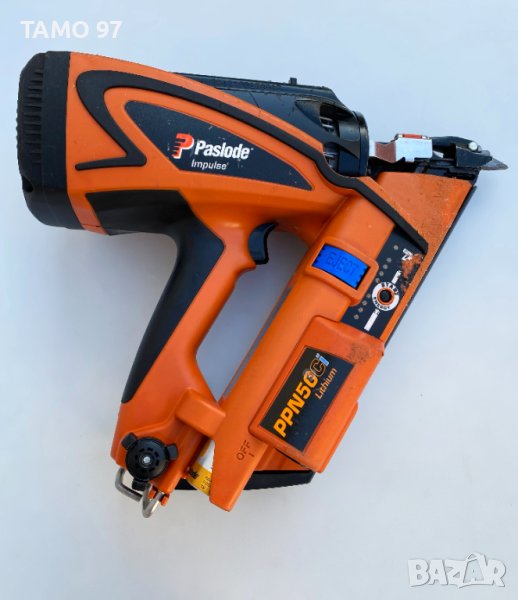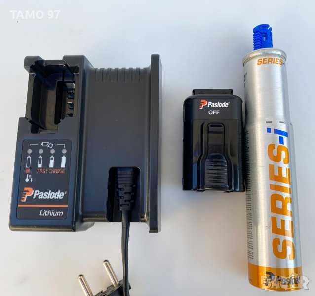 пистолет за пирони за дърво на Paslode, машината има леки козметични следи от използването, но си работи перфектно и без никакви забележки при желание може да изпратим и клип на лично. Такера работи с батерия и газ едновременно, внос от Франция. Обявената цена включва такер, една литиево-йонна батерия 7.2V 2.1Ah, един флакон газ, зарядно устройство и оригинално куфар.