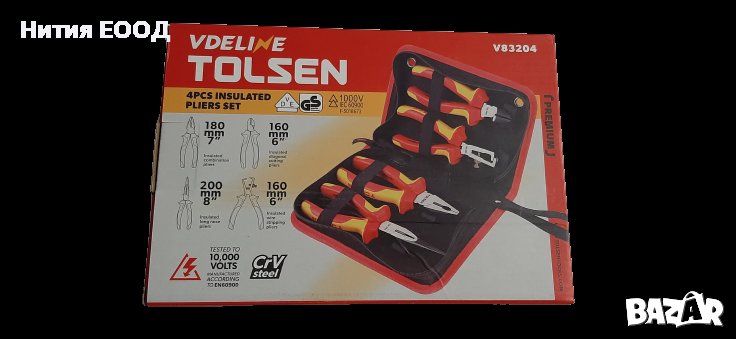 Предлагам чисто нов комплект изолирани клещи Tolsen Industrial 1000V, със сертификати VDE/GS, съответства на EN60900. Със здрави двукомпонентни дръжки, с основа, изработена от CrV стомана.