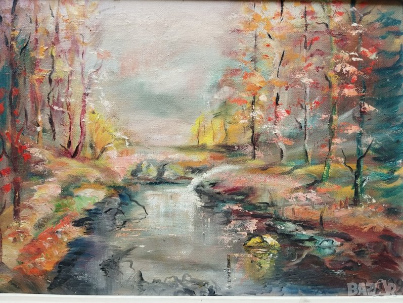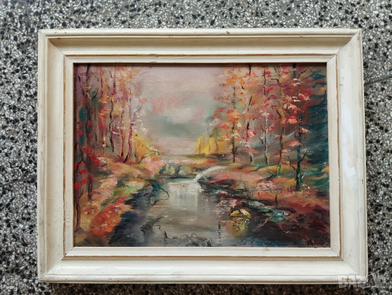 картина-пейзаж.масло на платно ,в дървена рамка с размери 48см/60см.