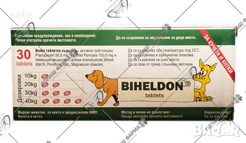 Бихелдон противопаризтни таблетки -1 кутия(30 бр. тбл.) за кучета и котки