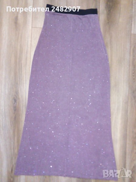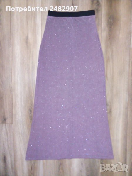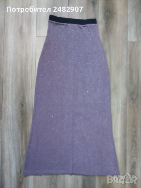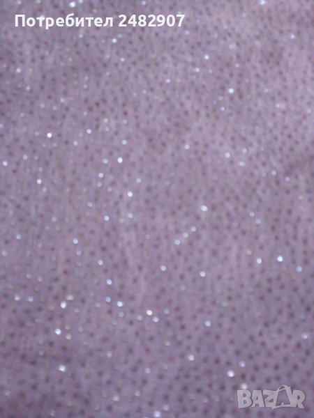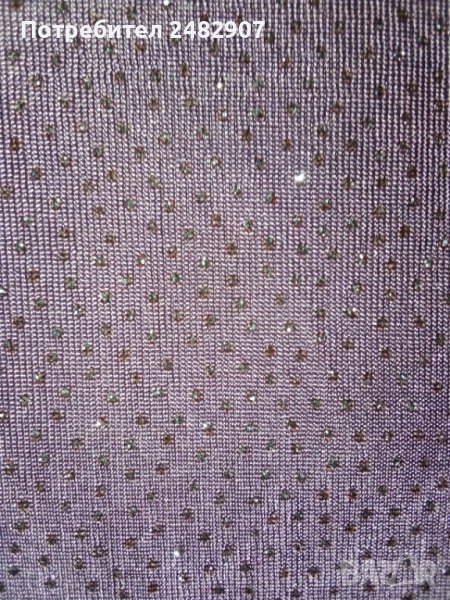 Дамска рокля, тип "бюстие" в цвят "пепел от рози" и блестящ ефект. Съдържа 95 % ацетат и 5 % еластан. Ширина в горната част - 30 см, ширина в долната част - 63, 5 см, дължина - 103 см. Запазена, с черен ластик в горната част, широк 3,5 см.