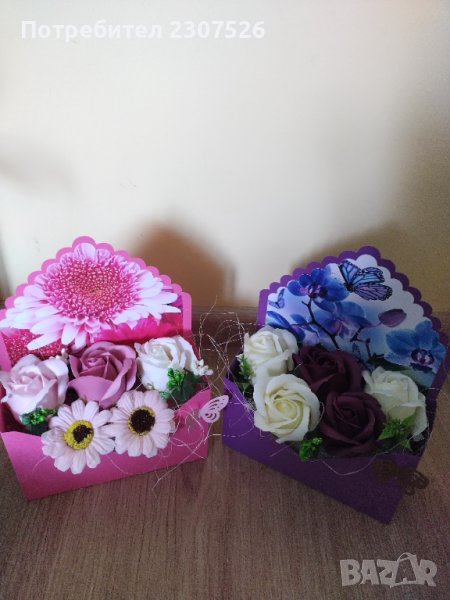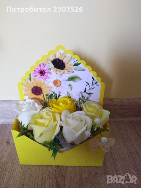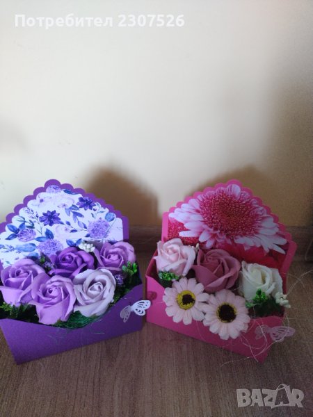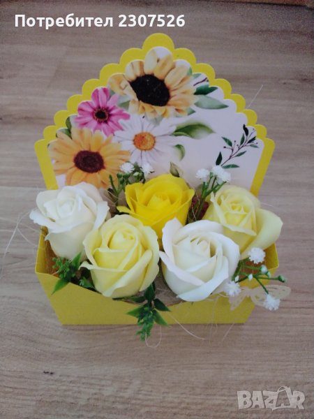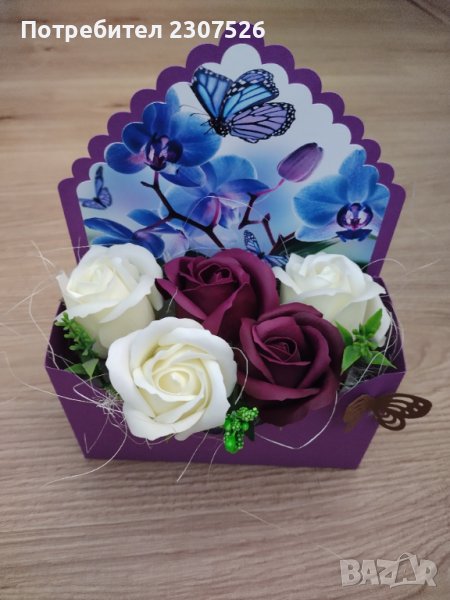 Кутия аранжирана с пластични сапунени ароматни рози🌹🌹🌹🌹🌹